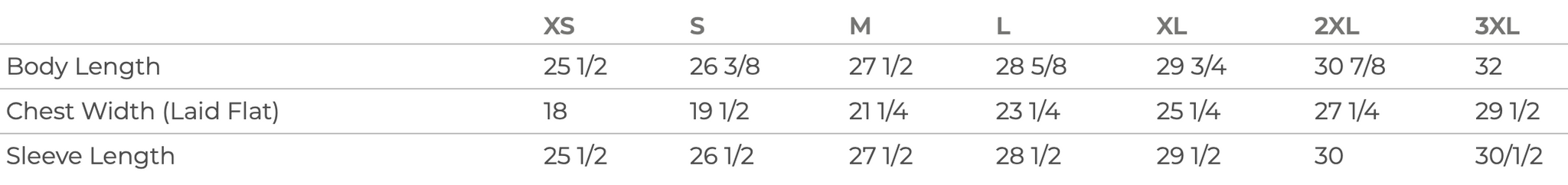 Unisex sizing