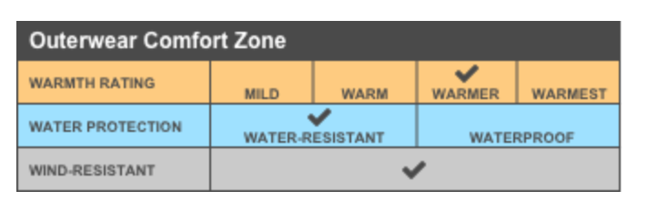 - 100% polyester woven shell bonded to a water-resistant film insert and a 100% polyester microfleece lining